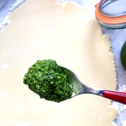 Pour une variante plus végétale : on ajoute des épinards lavés, équeutés et juste tombés à l’huile d’olive dans la crème au parmesan. Wouaouh.