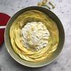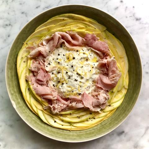A l'aide de la mandoline, tailler les courgettes dans le sens de la longueur, en réglant sur une petite épaisseur. Ici, c'était au niveau 2 sur 4.