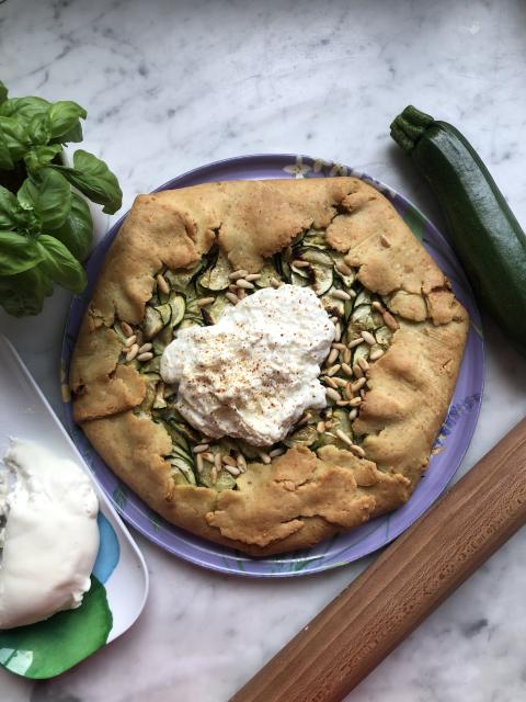 Tarte rustique aux courgettes, burrata et pesto